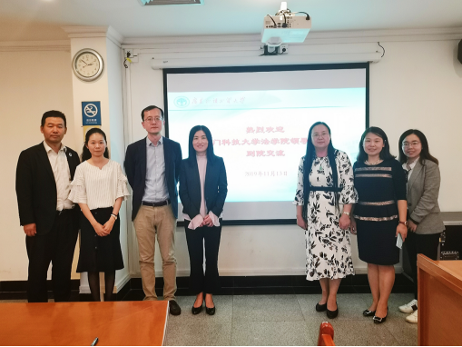2019月11月13日下午,澳门科技大学太阳成集团tyc9728执行经理方泉教授、课程主任毕经纬老师及其他澳科大随行工作人员一行到访公司,与公司就签署两院交流合作协议事宜举行会谈。太阳成集团tyc9728经理袁泉教授、太阳成集团tyc9728副经理韩永红教授在行政楼第二会议室会见了来访嘉宾,学院法律硕士教育中心秘书彭雪婷陪同出席会议。