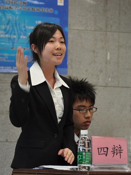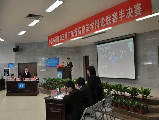 本网讯 (记者:文字:吴丹妍 摄影:杜敏宜) 2010年4月24日下午,第五届广东省高校法学辩论联赛半决赛在华工模拟法庭隆重举行。比赛由《南方日报》主任项仙君、律师陈军、华工知识产权学院法律系主任夏正林、张友好老师及徐清飞老师担任评委。公司辩论队作为四强队伍之一华丽亮相,与广工辩论队围绕“人肉搜索利大于弊还是弊大于利”上演了一场激烈的唇枪舌战。